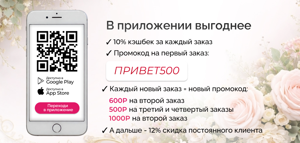 Бесплатная доставка цветов по Москве при заказе от 5 000 рублей, а к каждой композиции дарим подкормку и памятку по уходу — чтобы цветы радовали как можно дольше. Принимаем заказы 24/7 на сайте, по телефону, через мессенджеры и соцсети. Оплата картой любого банка, наличными и переводом курьеру, Яндекс Сплит.