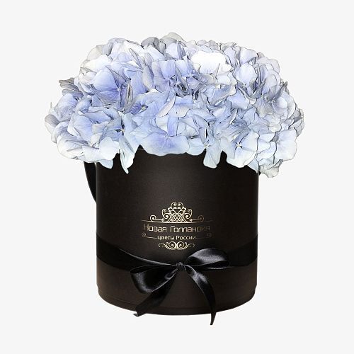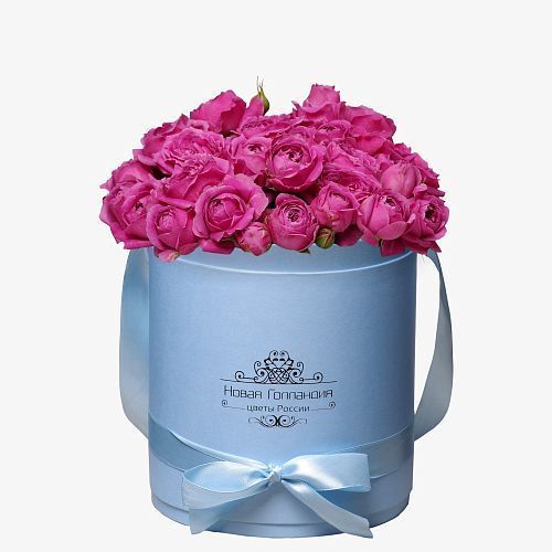 -10%11 розовых кустовых пионовидных роз в голубой шляпной коробке