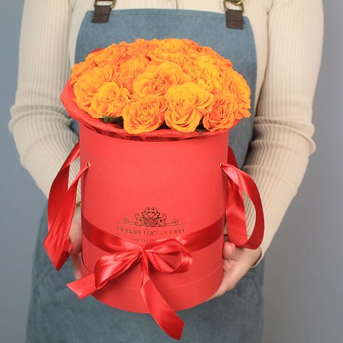 -10%25 оранжевых роз в красной шляпной коробкеВ корзину Оформить Купить в 1 клик